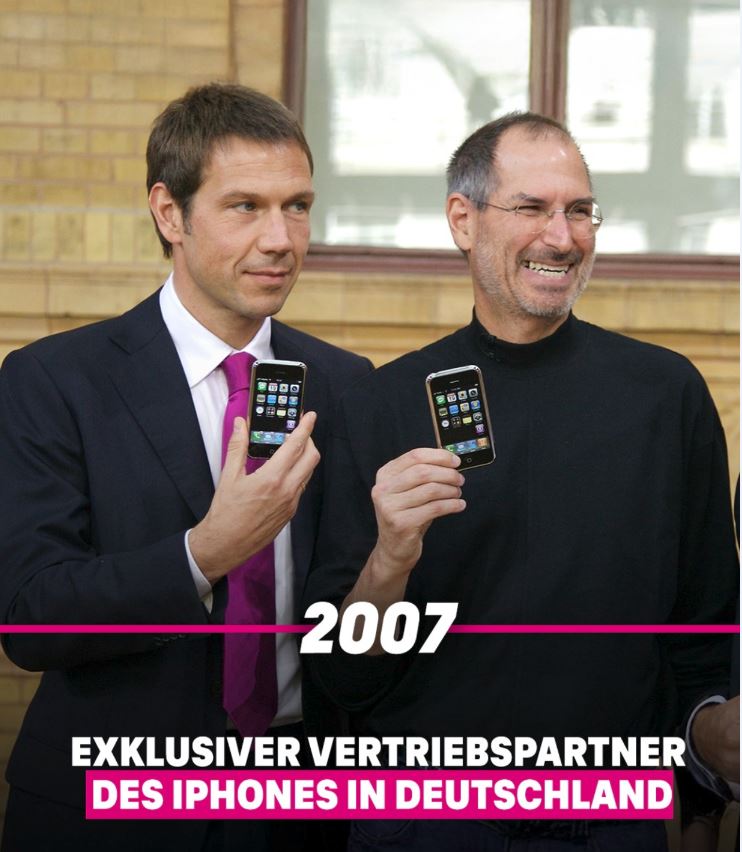 Steve Jobs (CEO of Apple Inc. Cupertino) with René Obermann (CEO Telekom) at the launch of the iPhone in 2007.