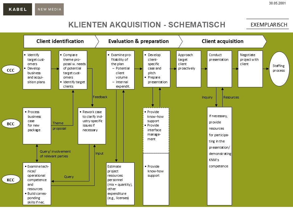 Kabel New Media (KNM) advises leading companies and brands on e-business, electronic marketing and e-commerce. Since the company was founded in 1993, KNM has established itself as one of the leading companies in the new economy with comprehensive new media and marketing know-how. KNM AG has been successfully listed on the Neuer Markt of the German Stock Exchange since June 1999. The Kabel Group currently employs over 1,000 people in Germany, the UK, Austria, the USA, Sweden and Switzerland.