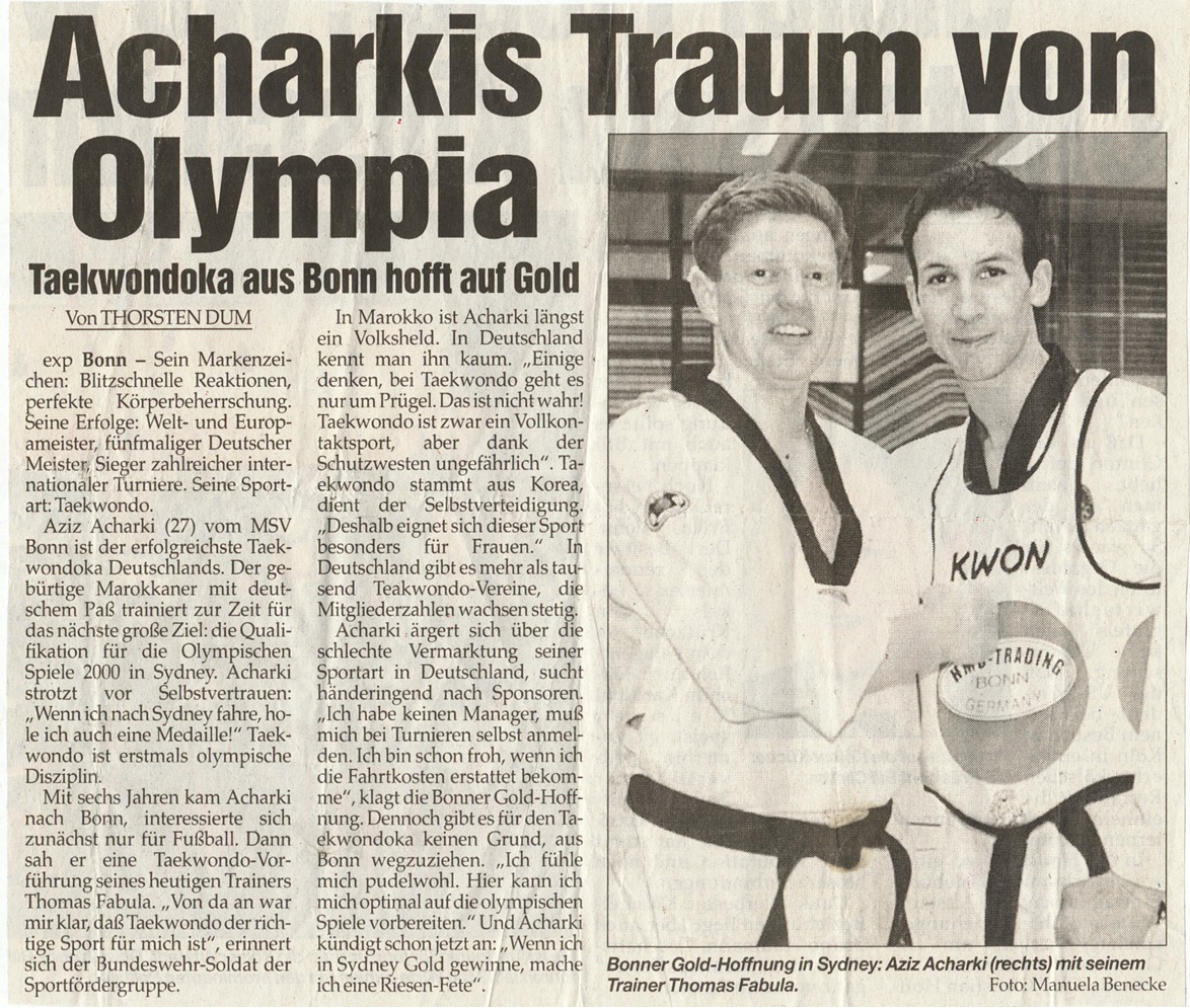 As one of Germany’s most successful Taekwondo competitors, Aziz Acharki took fifth place in the feather weight category (– 68 kg) at the 2000 Olympic Games in Sydney.